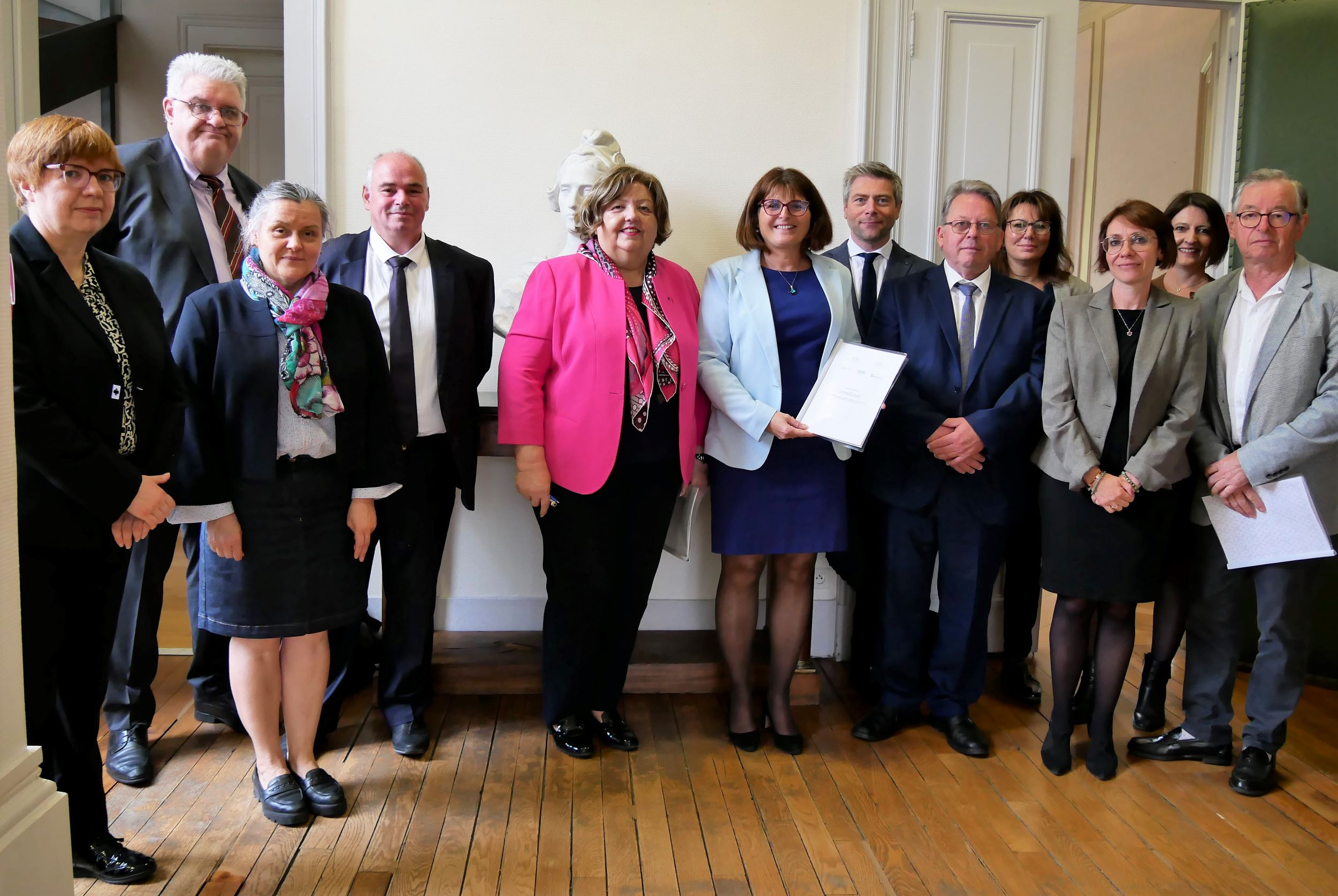 Pascale Rousselle, présidente de la cour administrative d’appel de Nancy et Cathy Schmerber, présidente du tribunal administratif de Besançon, ont officialisé avec Christian Hirsch, président du centre de gestion de la fonction publique territoriale du Doubs, Michel Désiré, président du centre de gestion de la fonction publique territoriale de la Haute Saône et Romuald Roicomte, président du centre de gestion de la fonction publique territoriale du Territoire de Belfort la signature d’une convention définissant le cadre dans lequel les parties ont choisi d’inscrire leurs relations en matière de médiation administrative.