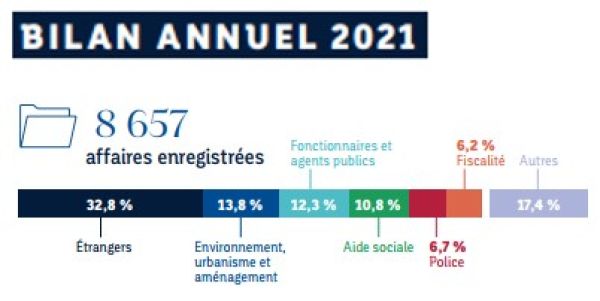 Si le contentieux des étrangers demeure en nombre le plus important avec 33,9 % des recours enregistrés, le tribunal est remarquable par l’importa ...
