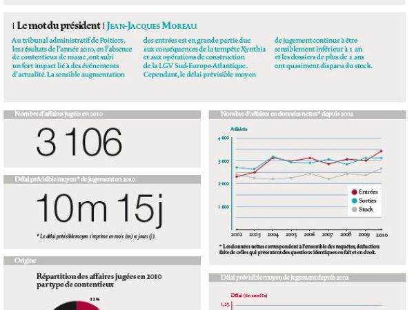 Au tribunal administratif de Poitiers, les résultats de l’année 2010, en l’absence de contentieux de masse, ont subi un fort impact lié à des évén ...