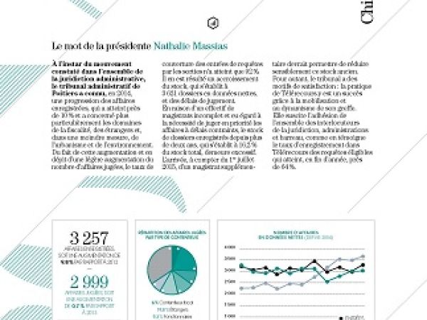 À l’instar du mouvement constaté dans l’ensemble de la juridiction administrative, le tribunal administratif de Poitiers a connu, en 2014, une pro ...
