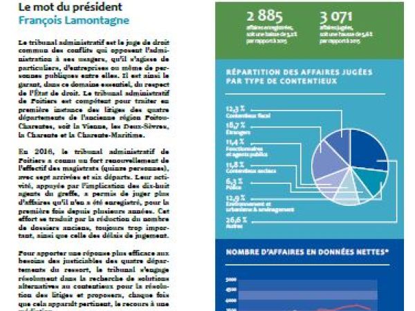 Après un pic historique d’activité l’année dernière, le tribunal administratif de Poitiers a connu une légère baisse des requêtes enregistrées en ...